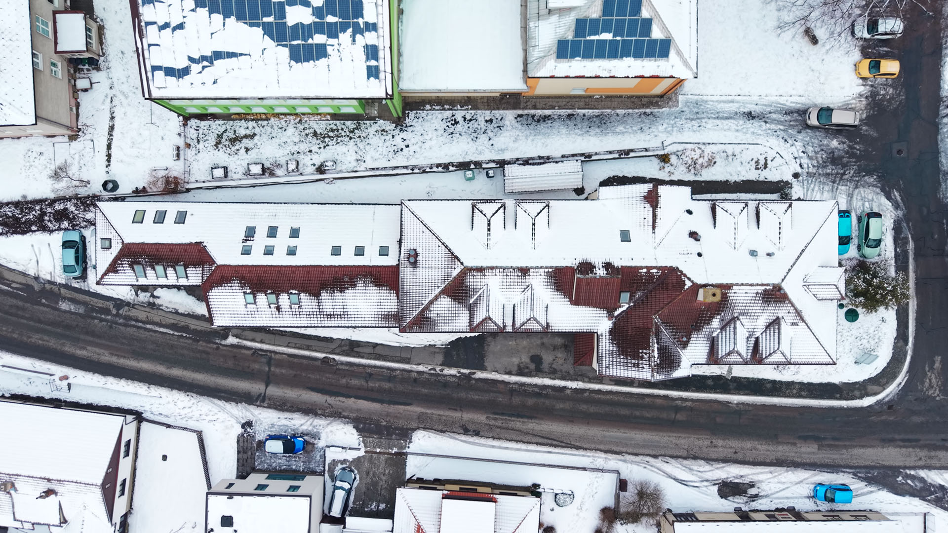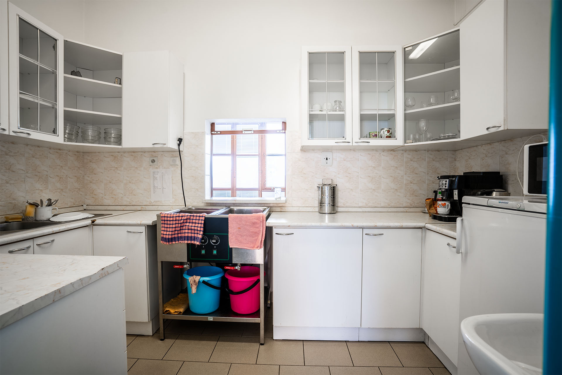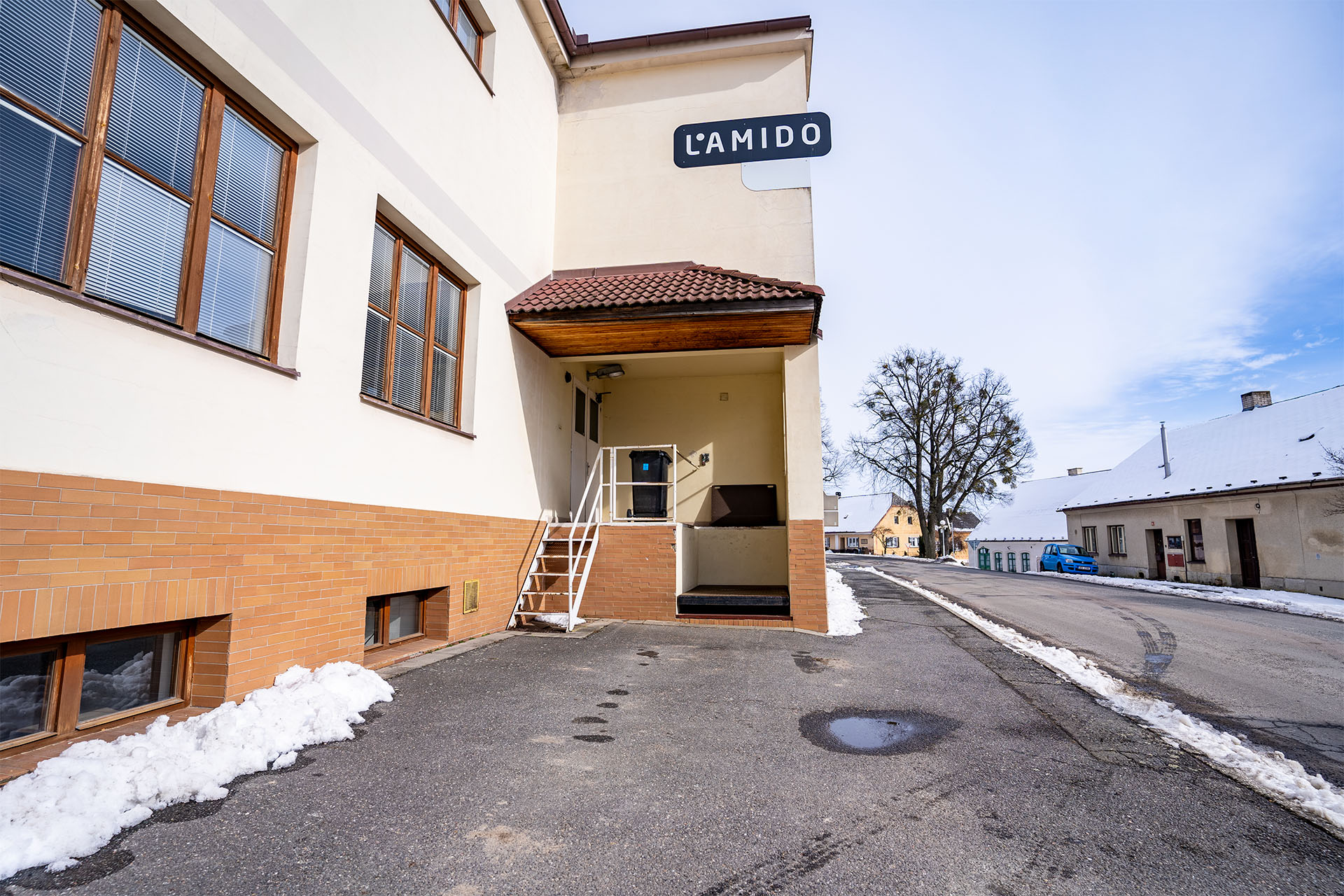Nechybí ani zázemí pro zaměstnance – vybavená kuchyně, jídelna i šatny, nebo podniková prodejna s přístupem z ulice. Součástí areálu je také garáž pro tři dodávky a u cesty je nakládací rampa.