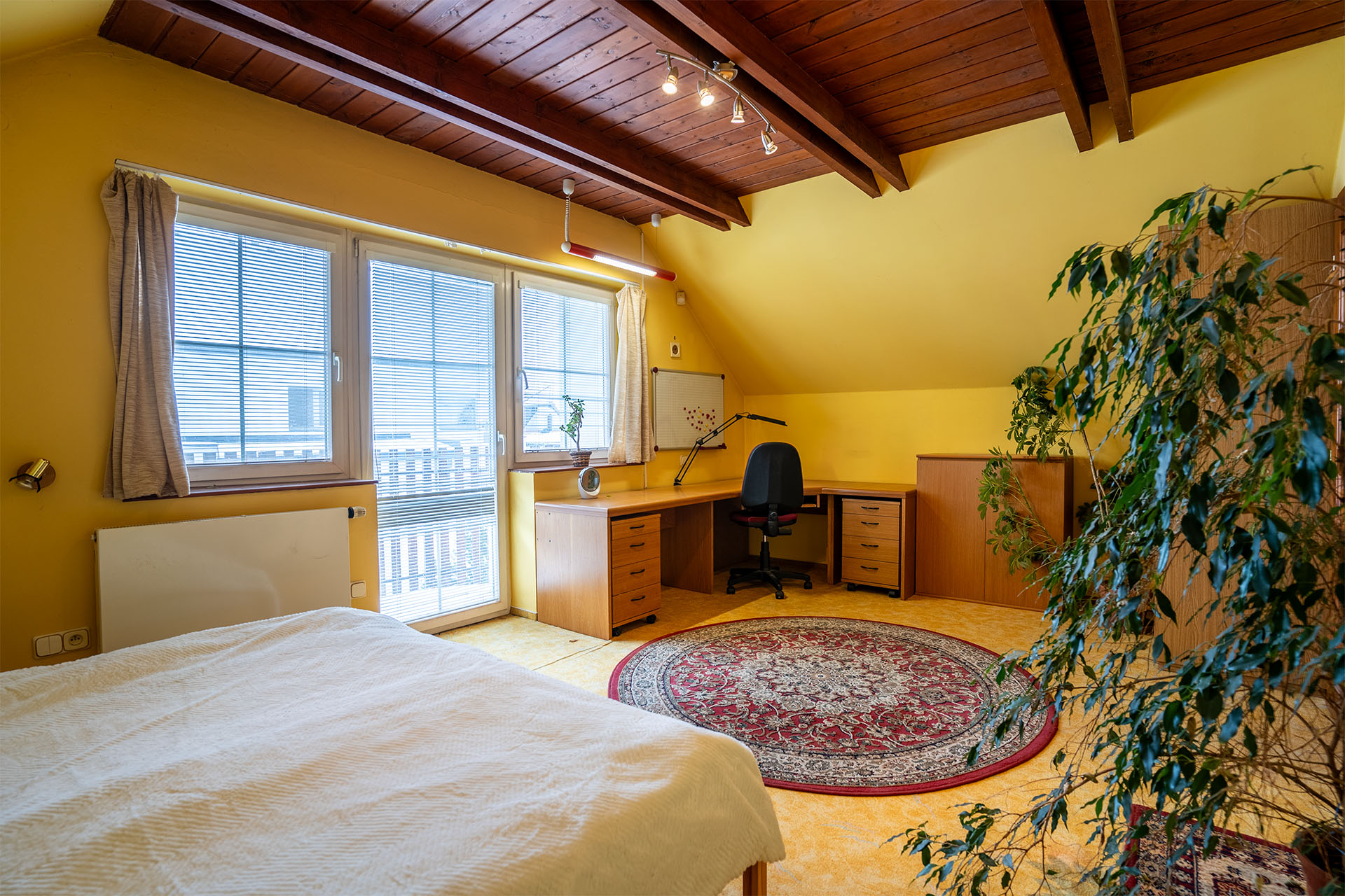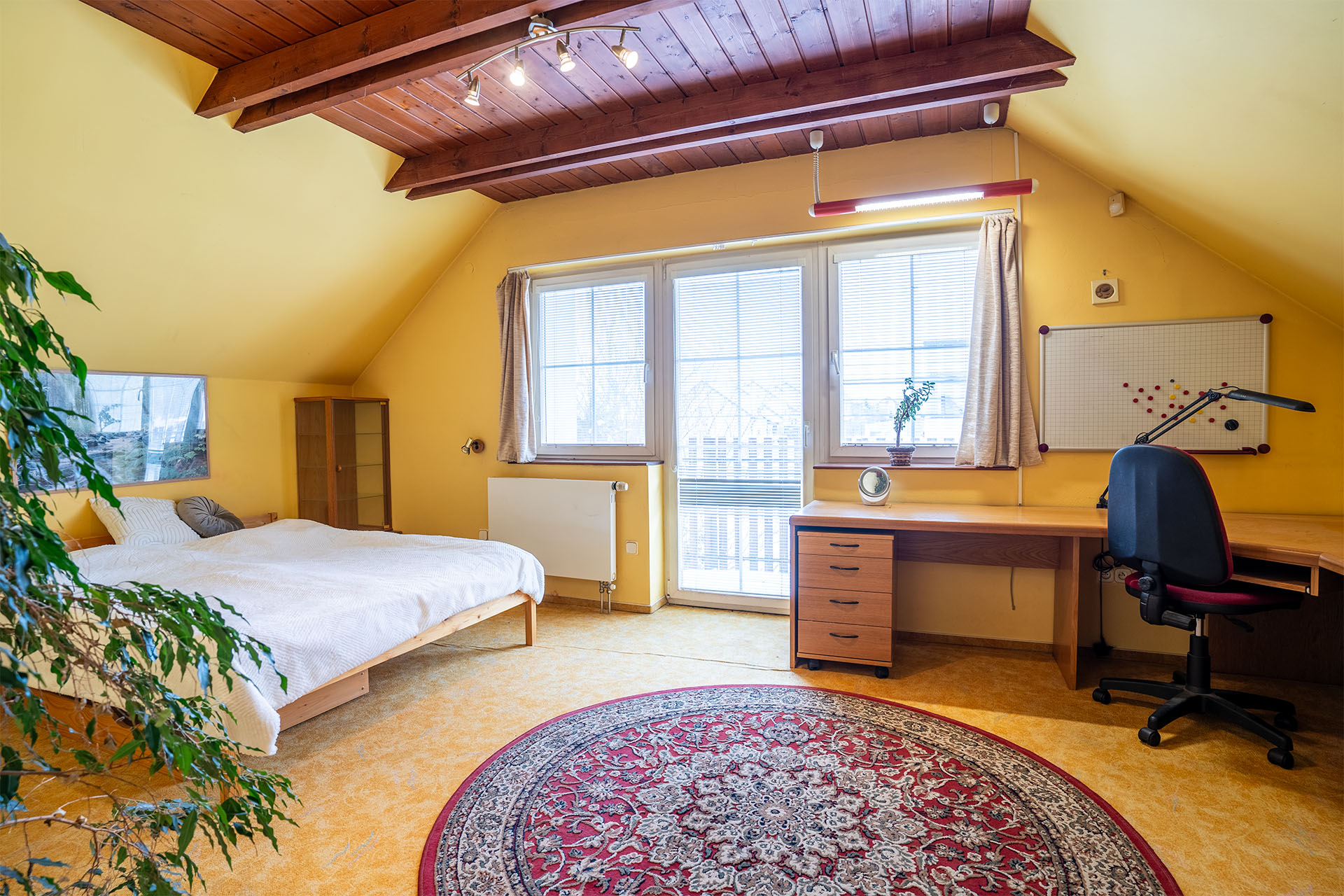 V ložnicích je dost místa na odpočinek, práci i všechny vaše věci. A pro společné chvíle je tu velká společenská místnost – z té může být dětská herna, kancelář nebo třeba domácí fitko i kino.