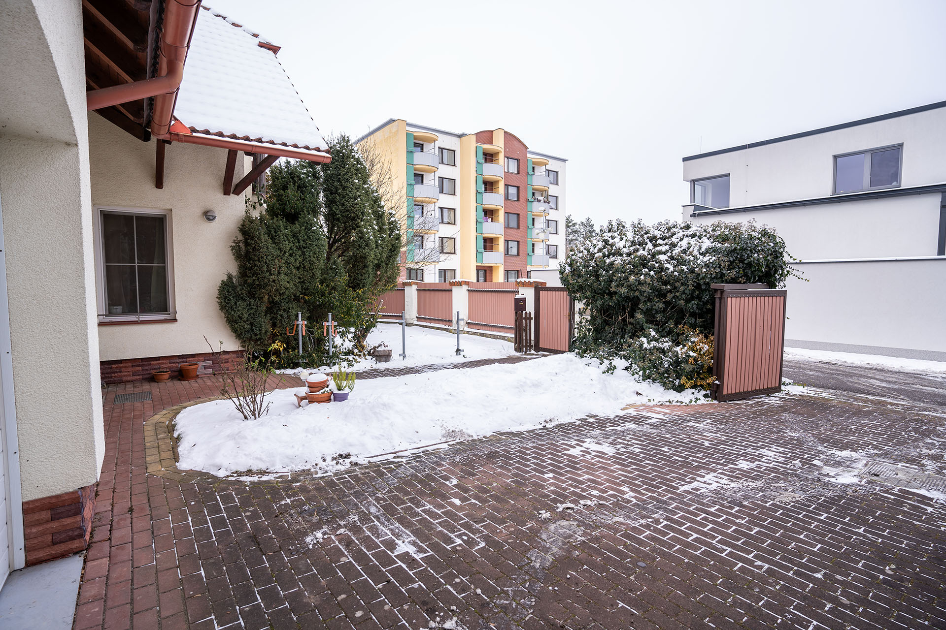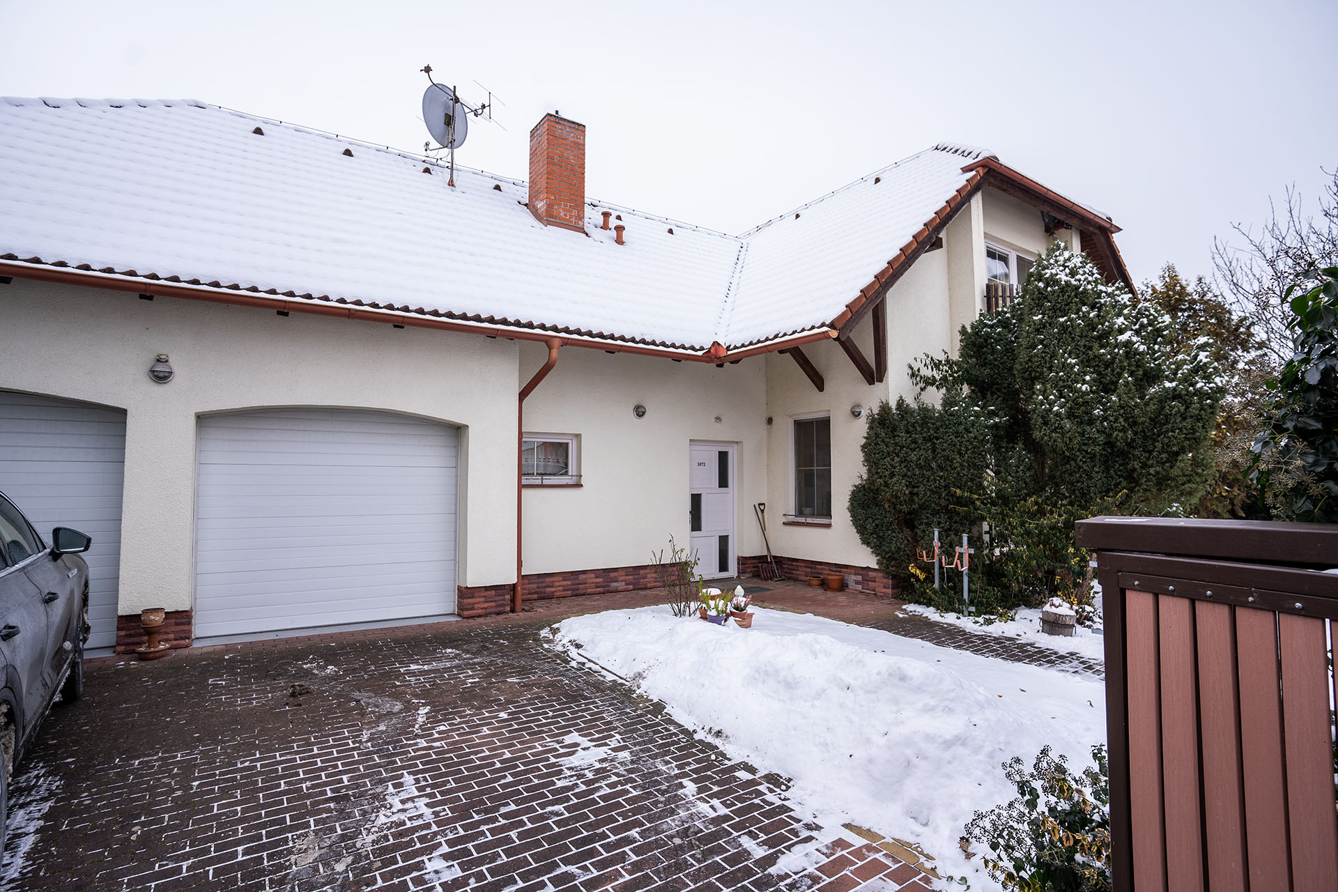 Auta zaparkujete na příjezdovce za branou nebo ve dvougaráži s technickým zázemím. Bránu i garážová vrata otevřete pohodlně dálkovým ovládáním.