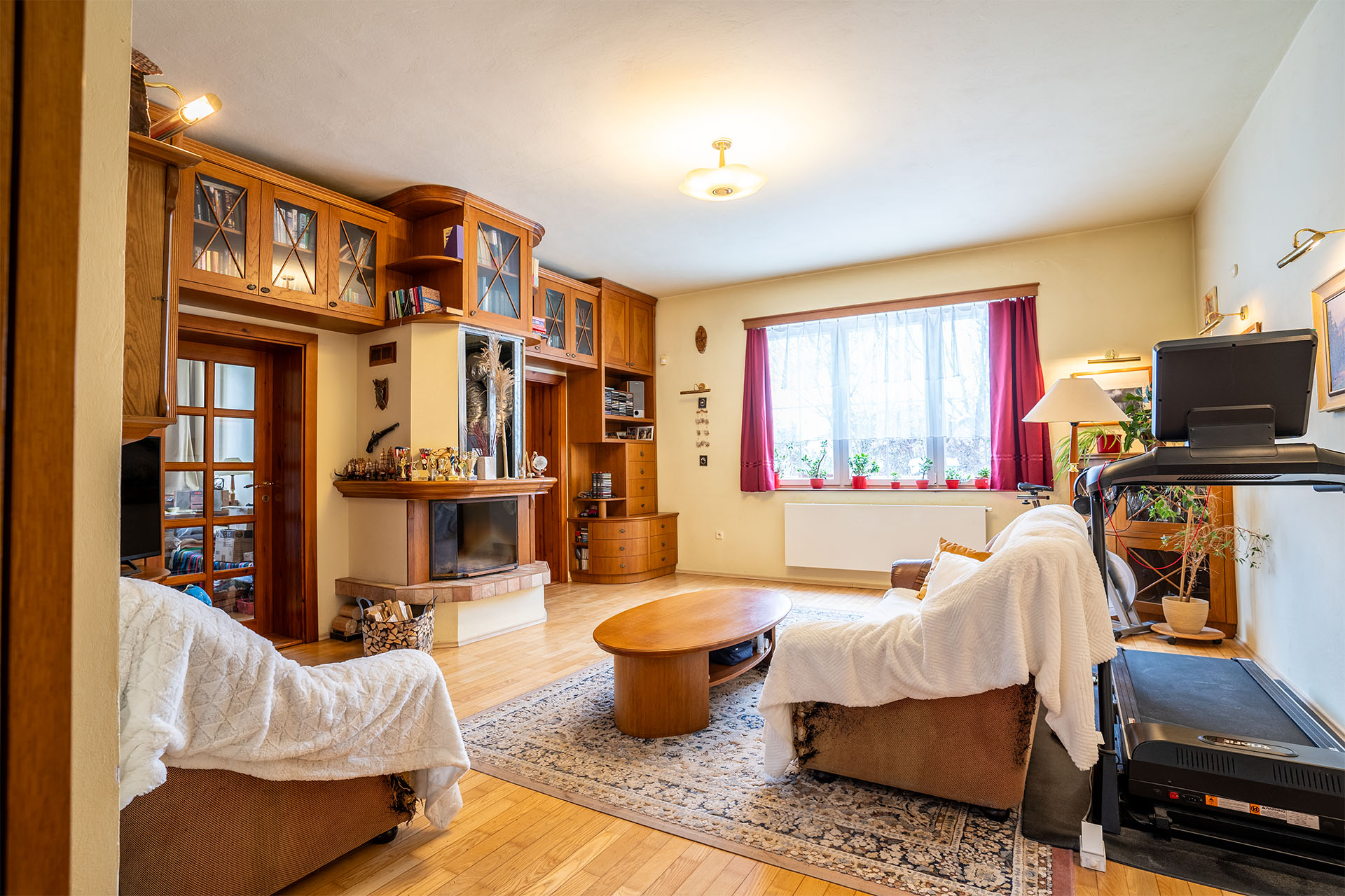 O vytápění se stará plynový kotel s rozvody do radiátorů v pokojích a podlahového topení v koupelně a hale. V obýváku je navíc velký krb, kterým vytopíte celé přízemí.
